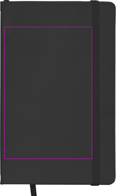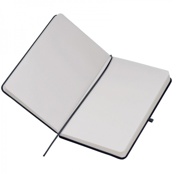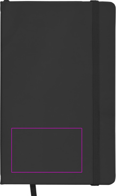 Тетрадь формата DIN A5 в бархатистой ПУ обложке на 160 нейтральных страниц. На обложке напечатаем ваш логотип.
