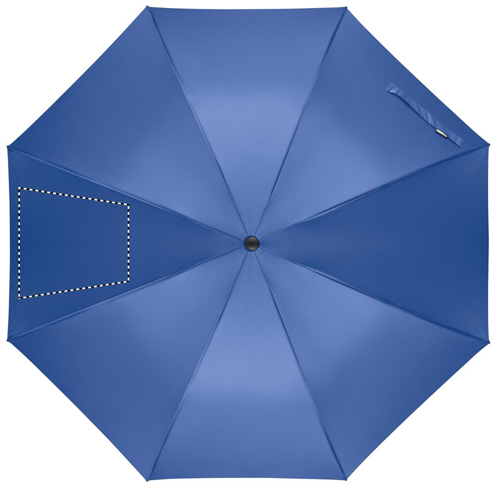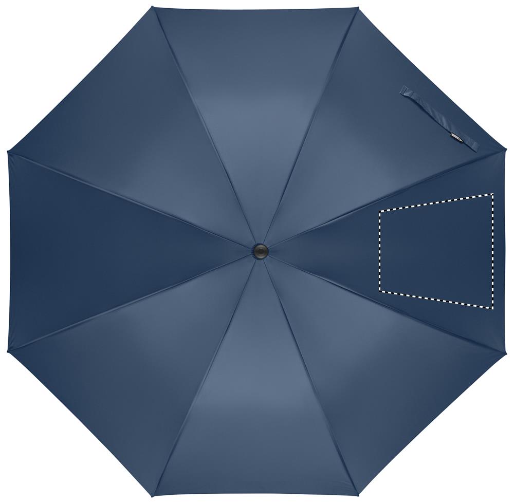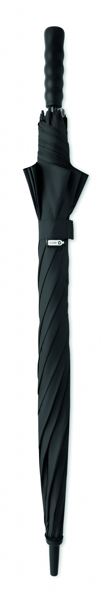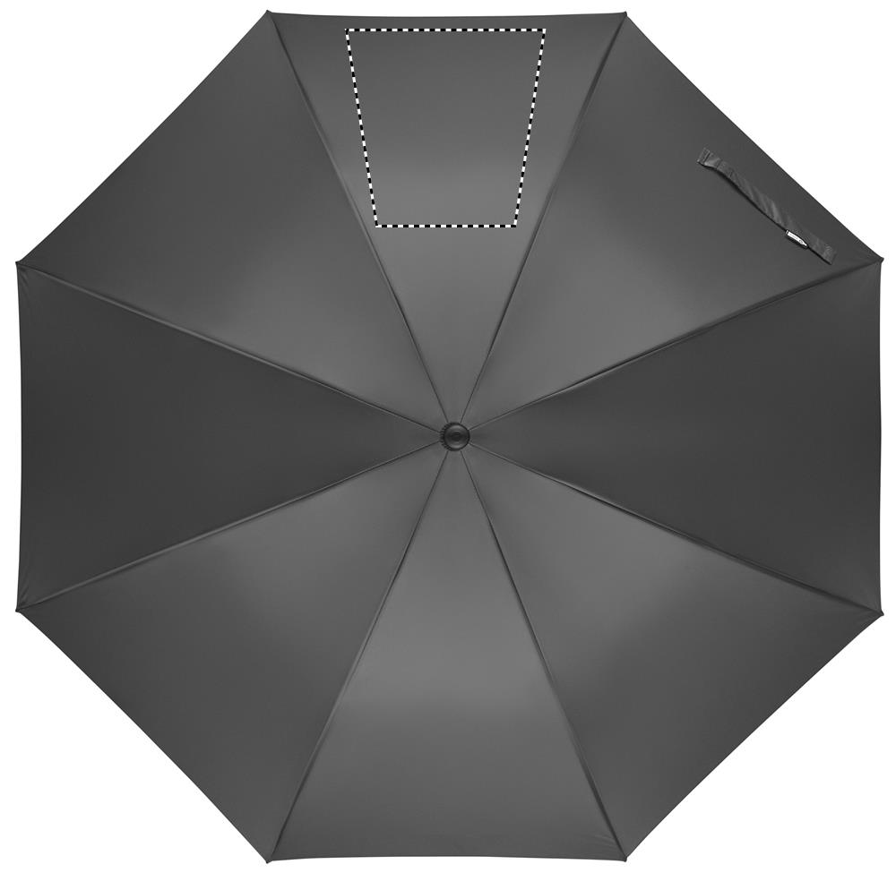 27-дюймовый зонт устойчивый к ветру с автоматическим раскрытием из переработанного эпонжа 190T. Стержень и спицы из стекловолокна. Ручка из переработанной пшеничной соломы и пластика. Пластиковые наконечники и верхняя часть.