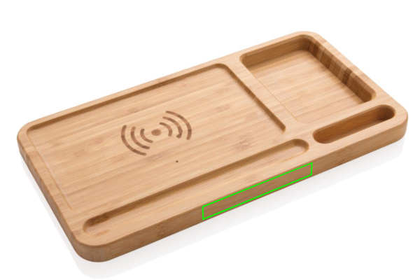 Logotrade profilreklam bild: Bambu skrivbordsorganisatör 5W trådlös laddare