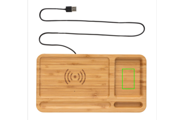 Logotrade reklamprodukter bild: Bambu skrivbordsorganisatör 5W trådlös laddare