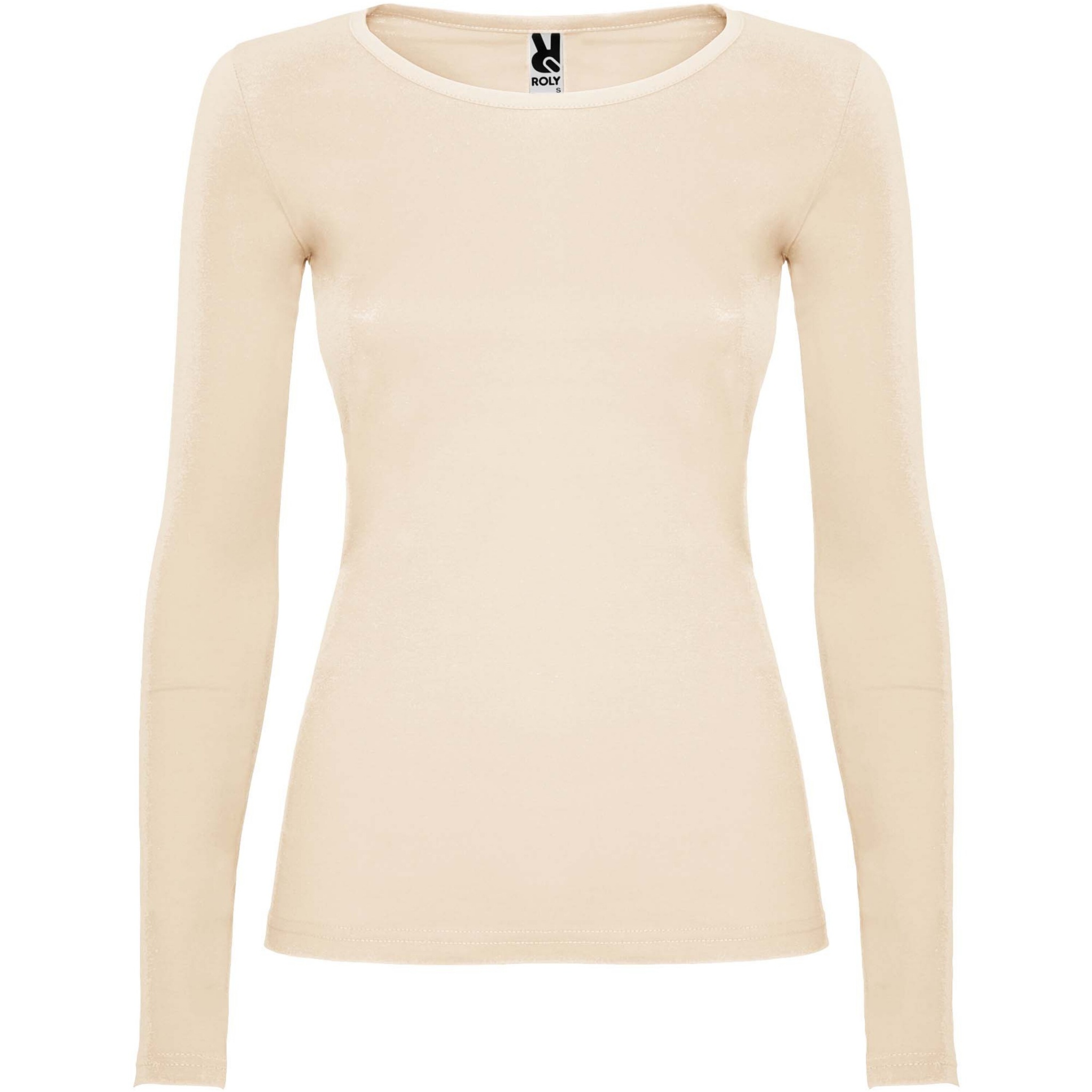 Delvis figursydd långärmad T-shirt med kantad krage. Inga muffar. Sidsömmar. Borttagbar etikett.