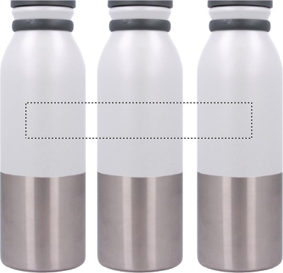 Vattenflaska/termos med dubbelväggad i rostfritt stål med silikon runt om för ett bra grepp. Termosen är läckagefri. Kapacitet: 600 ml. Läckagefritt.