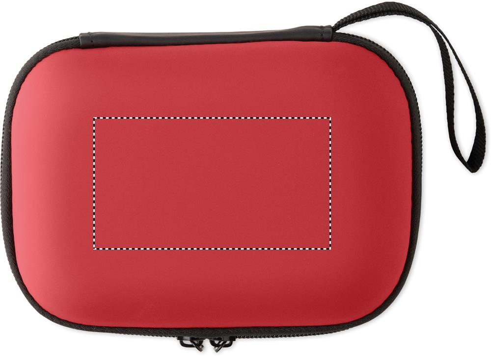 Första hjälpen-kit i hårt PU-fodral. Innehåller 2 handskar, 1 filt, 1 tejp, 2 bandage, 1 sax, 4 tops, 10 plåster och 6 rengöringsservetter. Ej tillgänglig för försäljning utanför EU.