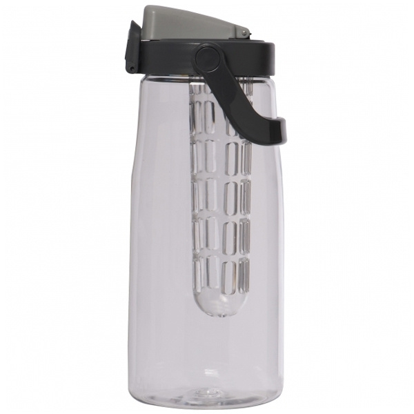 Stor dryckesautomat av plast med låsbar pip, bärhandtag,silinsats för t.ex. frukt och kapacitet 2500 ml. Vi kommer att trycka din logotyp på den nedre delen av flaskan.