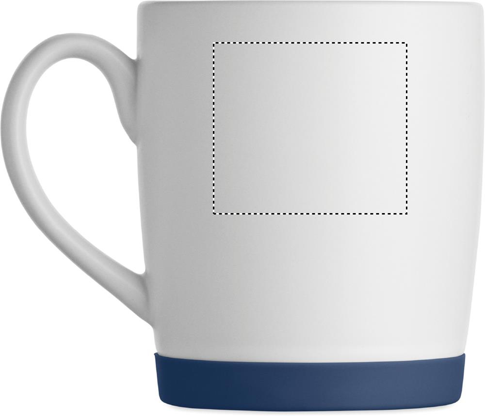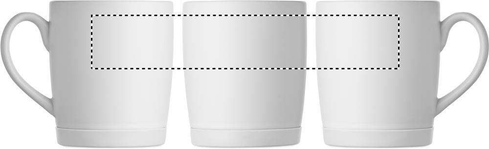 Keramisk mugg med vit matt yta och silikonbotten för stabilitet. Volym 300 ml. Individuell förpackning i vit kartong.