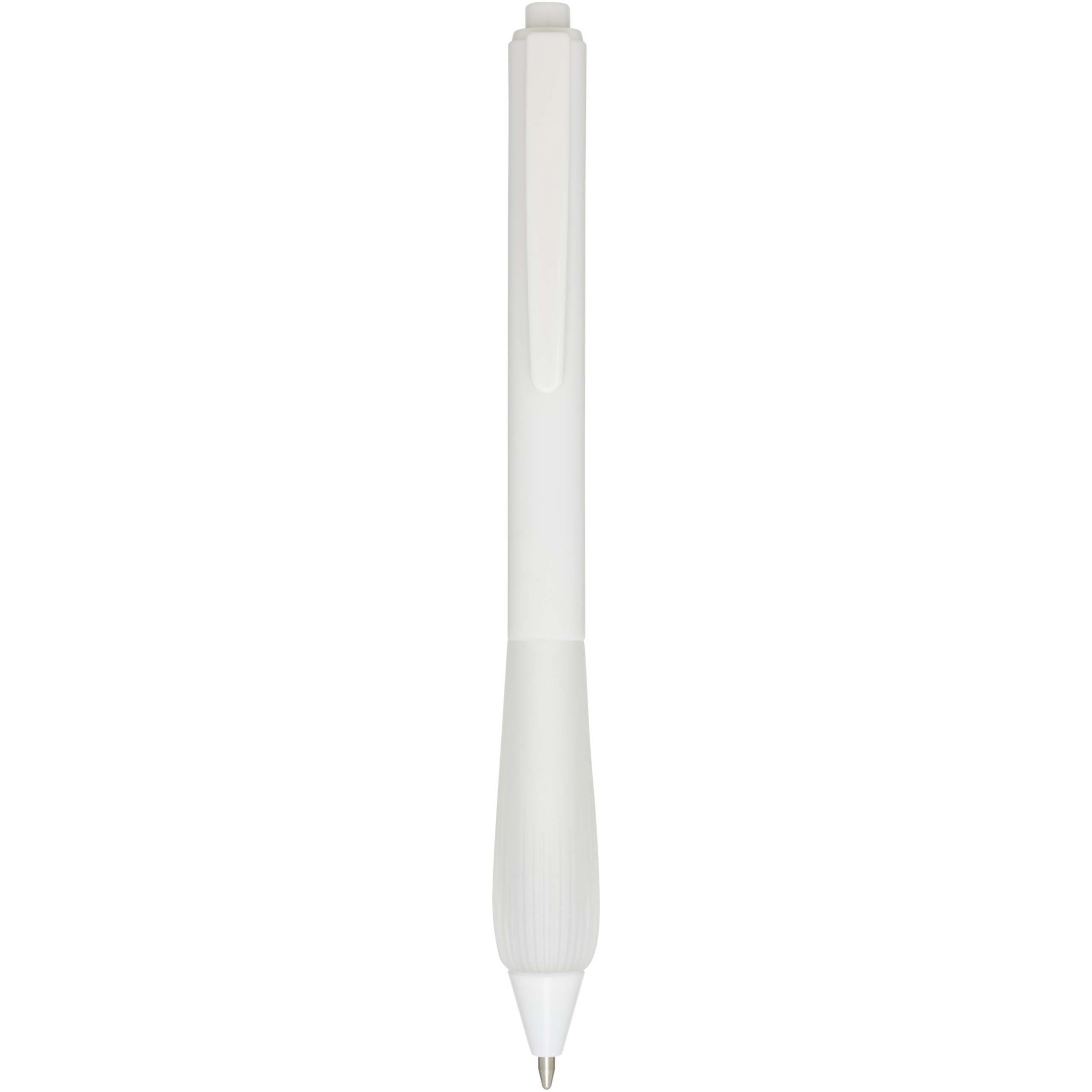 Kulspetspenna av återvunnen plast med gummerad pennkropp och grepp av TPR. Bläckfärg: Svart. Skrivlängd: 1000 meter. NIB-storlek: 1,0 mm.