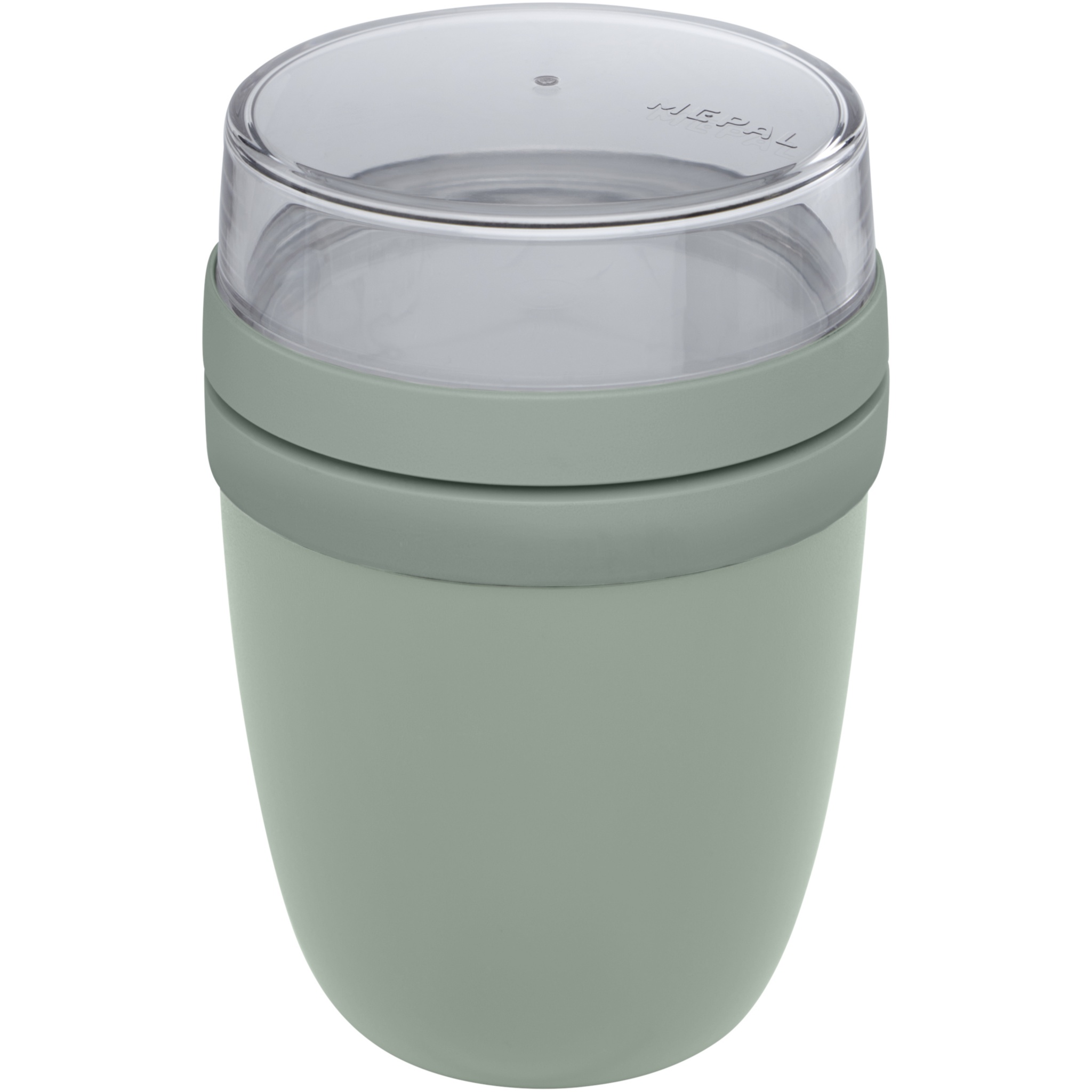 Lunchlåda med två olika fack för att hålla de olika ingredienserna åtskilda. Båda behållarna har ett separat lock och förblir därför rena. Innehållet i den översta transparenta behållaren är 200 ml, vilket innebär att den kan hålla ca 75 gram fast föda. Bottenbehållarens kapacitet är 500 ml. Tillverkad av slitstarkt material och kan användas i frysen, mikrovågsugnen (ta bort locket) och diskmaskin. Den översta transparenta behållaren ska inte användas i mikrovågsugnen. Läckagesäker. BPA-fri. 2 års garanti från Mepal.