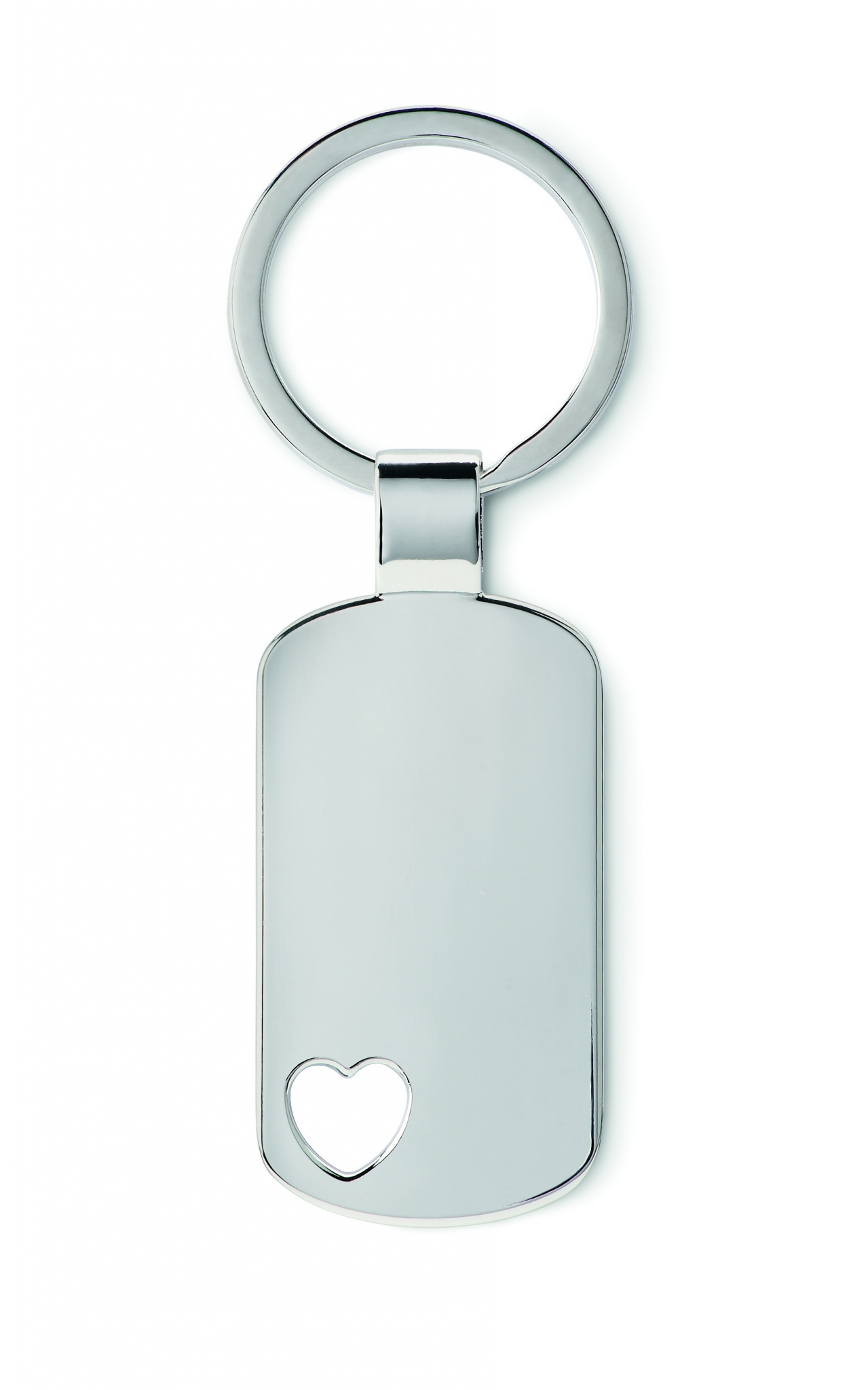 Metall nyckelring med ett litet utstansat hjärta längst ner. Individuellt packade i ask.