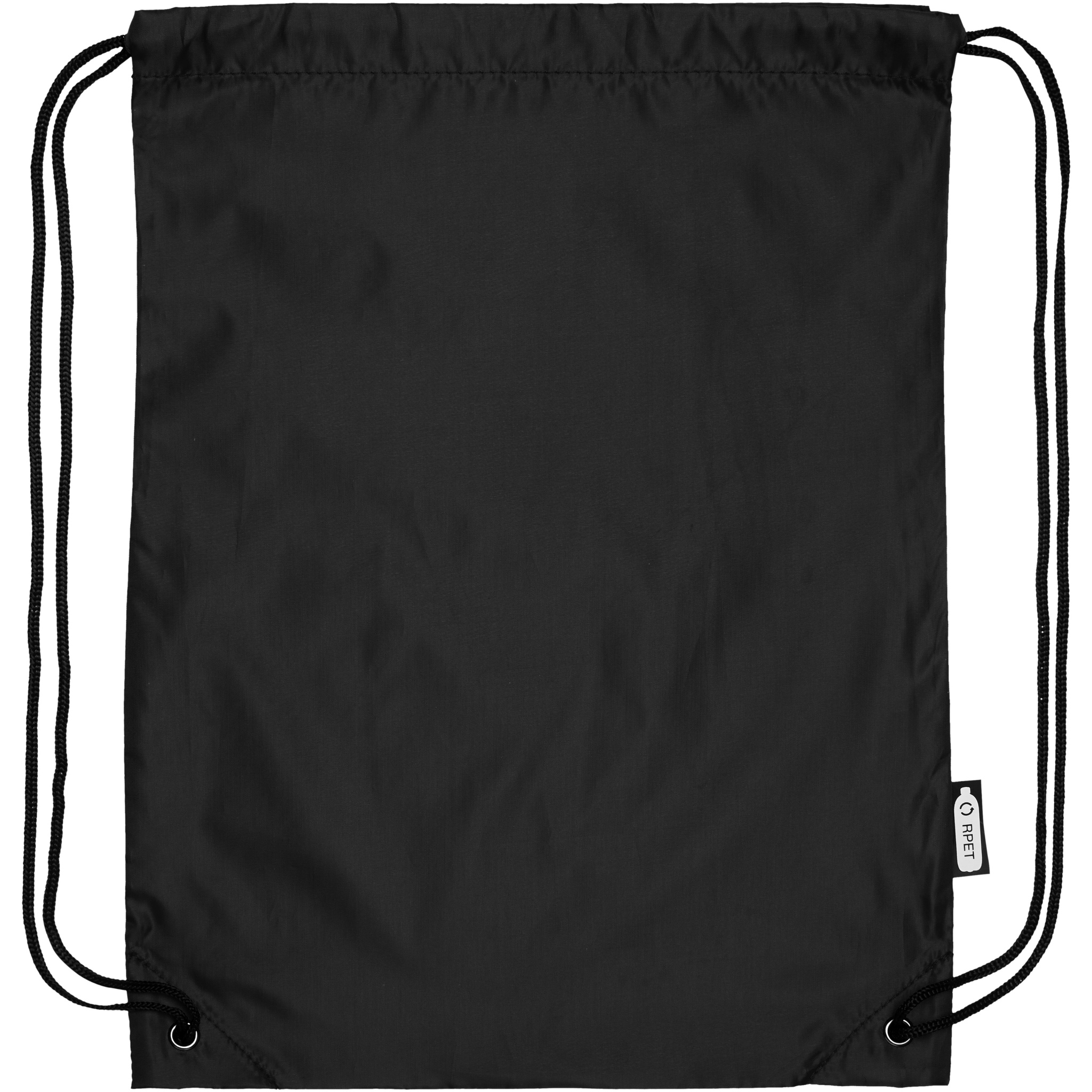 Oriole RPET ryggsäck med dragsko. Tålig påse tillverkad av 100% återvunnen plast som bidrar till att minska plastavfall. Varje påse är tillverkad av 3,5 återvunna PET-flaskor. Stort huvudfack med dragskostängning i svart färg. Kapacitet: 5 liter, klarar upp till 5 kg vikt. 190T återvunnet PET.