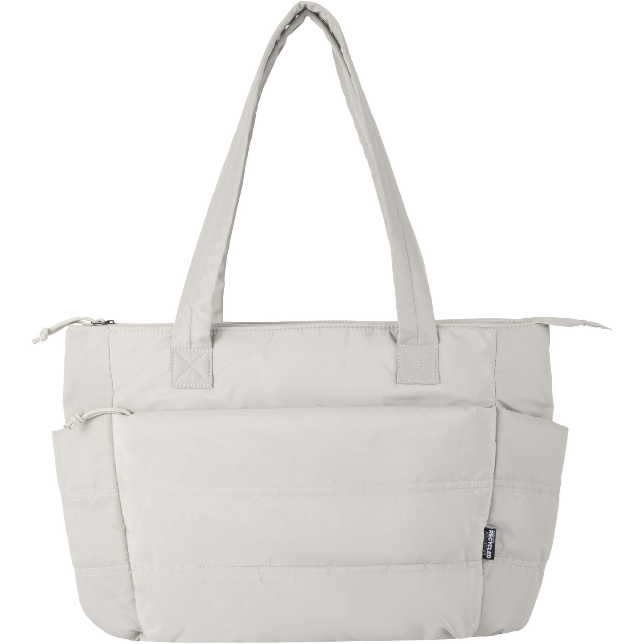 Tygtoten Puffer på 15,6 tum för bärbara datorer kombinerar GRS-certifierade återvunna material med en smart och modern design. Den rymmer 18 liter och har en vadderad avdelning för bärbara datorer upp till 15,6 tum samt flera invändiga och utvändiga fickor för bärbara datorer, laddare, vattenflaskor och andra viktiga saker. Långa vadderade handtag och en rem för rullväska gör den bekväm att bära, medan vadderingen i pufferstil ger både skydd och ett snyggt utseende. Den här lätta och vattenavvisande tygväskan är ett perfekt val för yrkesverksamma och studenter på resande fot.
