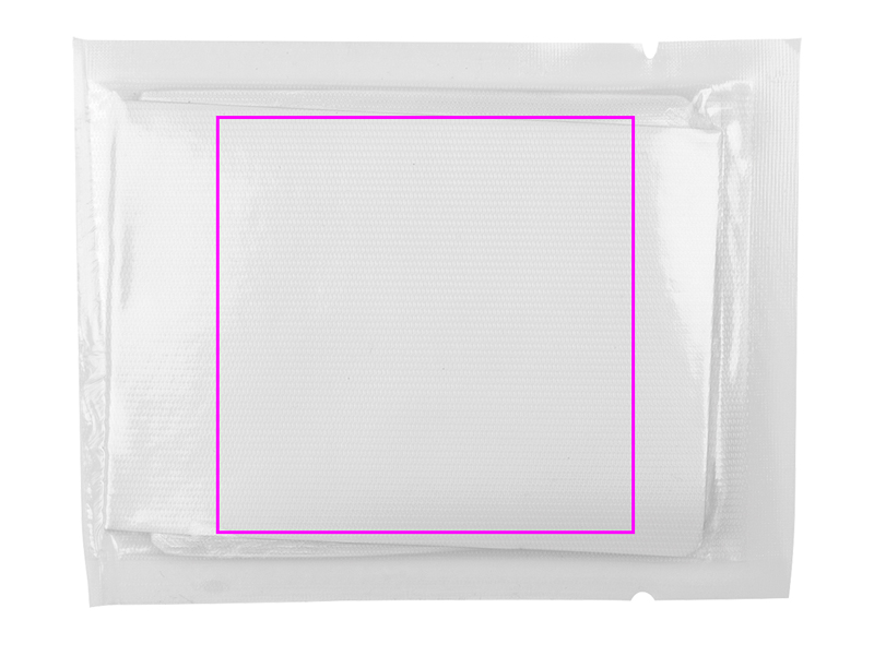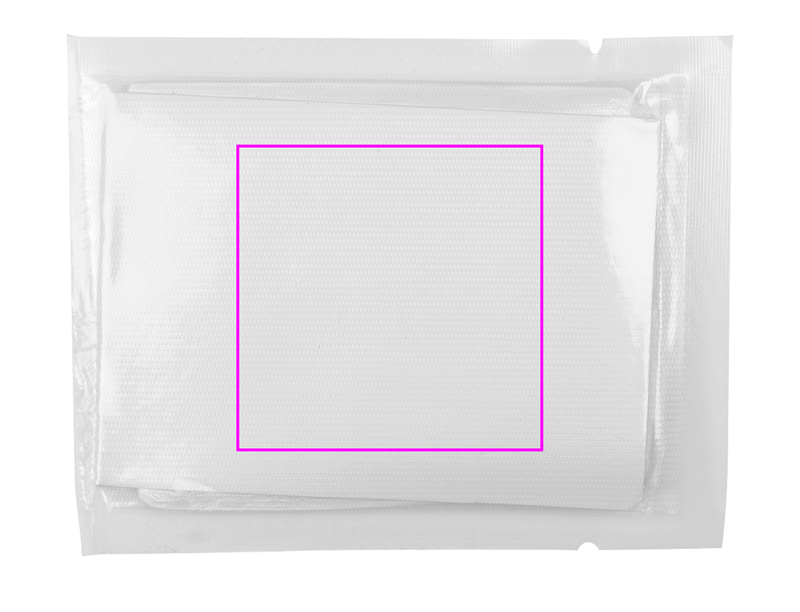 Regnponcho vikt i en liten förpackning (8,5 x 6 cm). Vi trycker din logotyp på en etikett som fästs på förpackningen. Baksida av ovikt kappa - 113 x 78 cm.