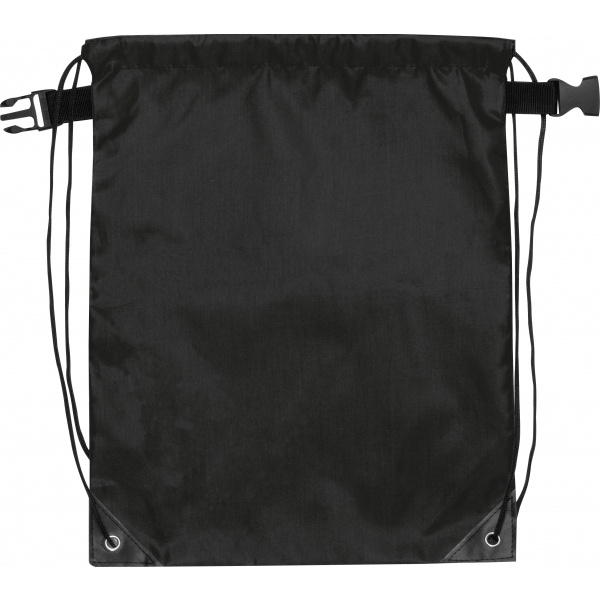 Sportväska av återvunnen PET. Utöver axelremmarna och förstärkta öljetter har väskan en extra tryckknappsstängning upptill. Detta gör att väskan enkelt kan fästas på en ryggsäck, vagn, etc.