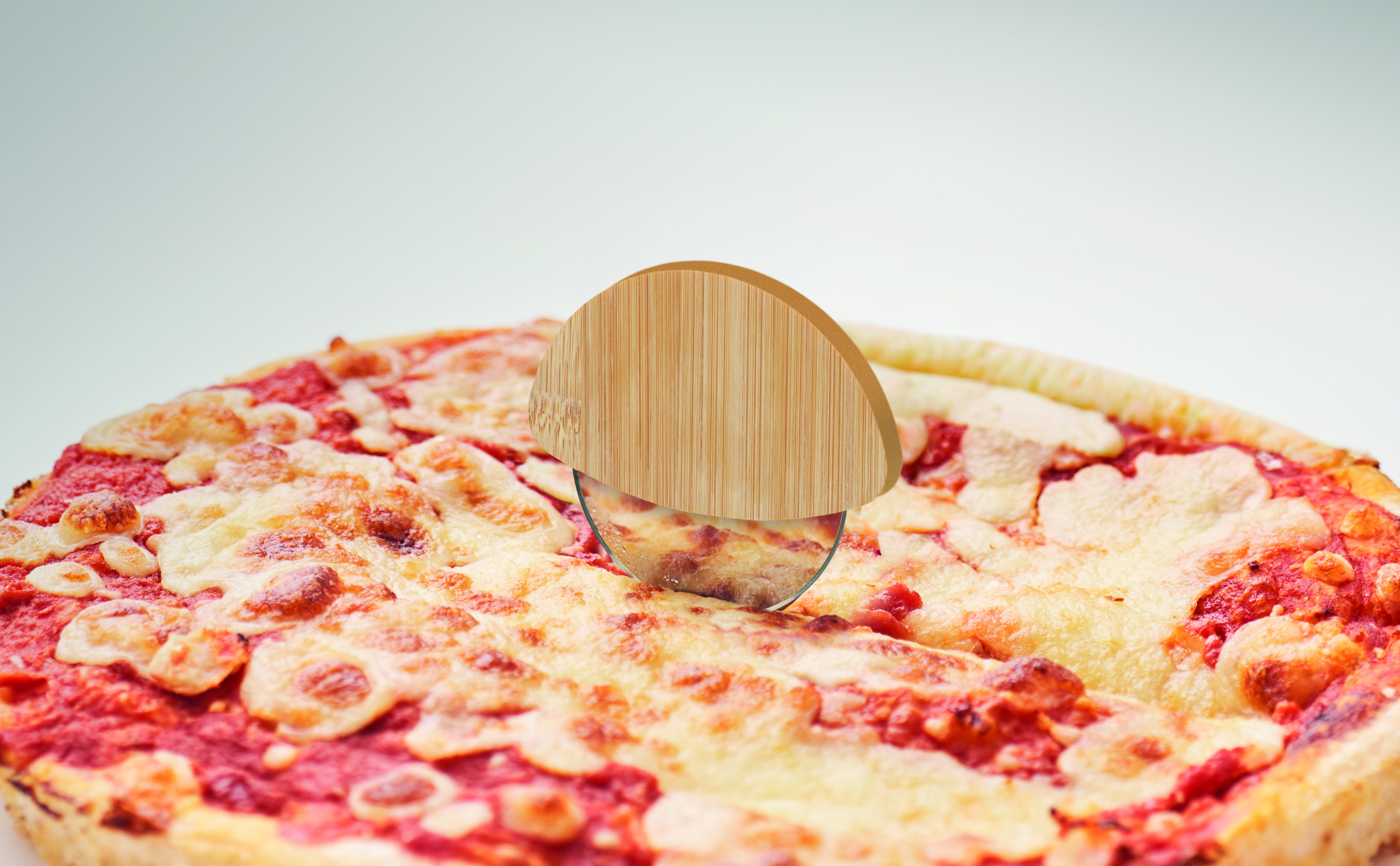 Logotrade kampanjprodukter bild: Rund pizzaskärare av bambu