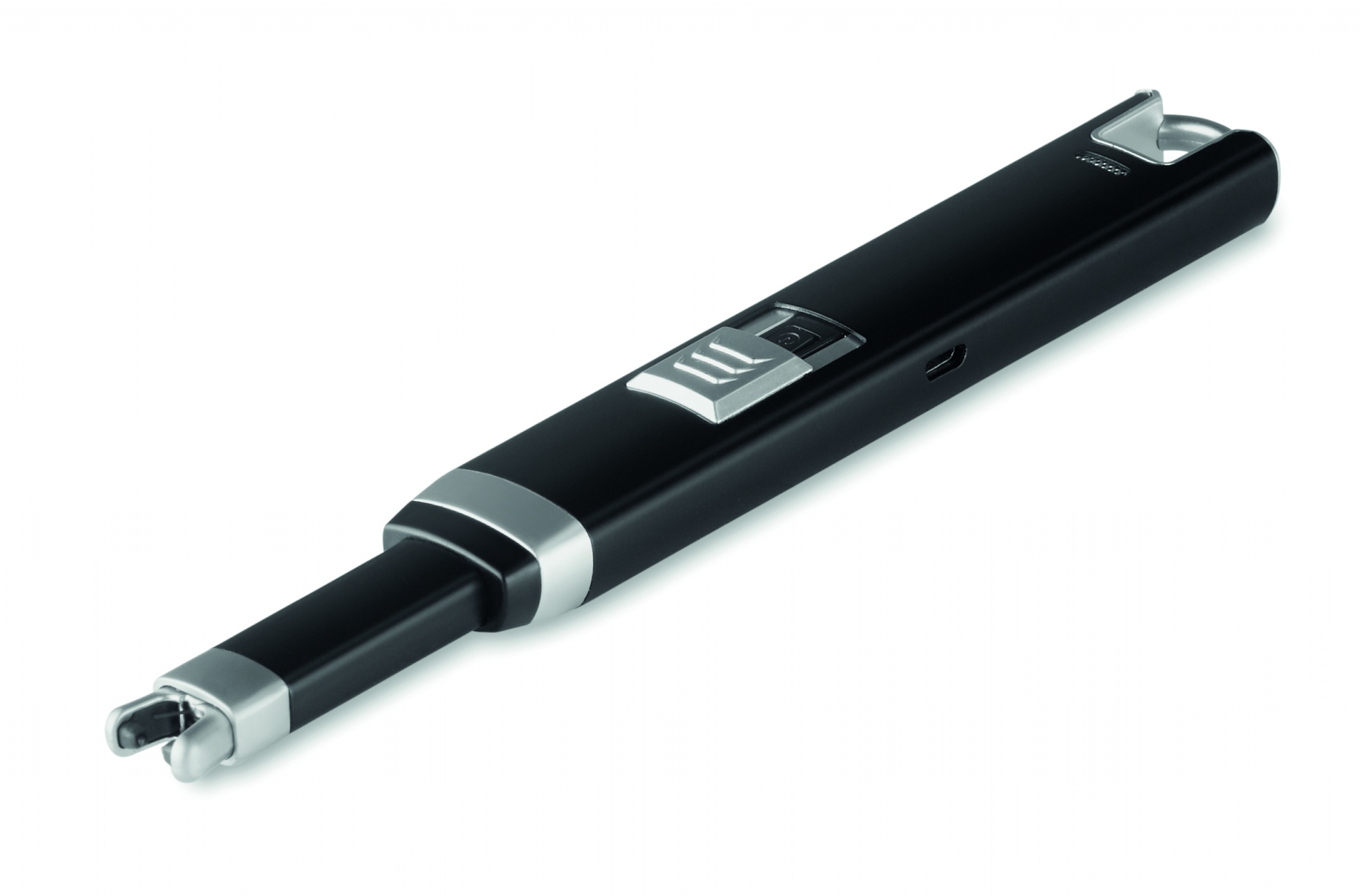 Liten uppladdningsbar USB-tändare med inbyggt Li-ion 220 mAh batteri. Byt ut dina gamla gaständare mot en uppladdningsbar USB-tändare. Middagens stämningsfulla ljus, uteplatsens lyktor, grillen och kaminen tänds med ett enkelt knapptryck av denna elektriska tändare. Vind eller småkrångliga vinklar hindrar inte heller den här lilla apparaten från att ge låga. Eftersom du kan ladda tändaren om och om igen resulterar det i ett mer miljövänligt alternativ till gas- eller engångständare. Laddas via micro USB-kabel (ingår).