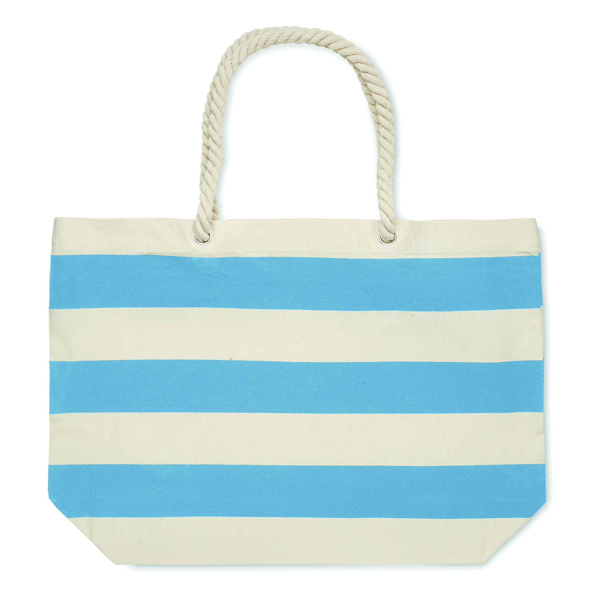 Randig strand- eller shoppingväska i bomull med snörhandtag. 220 gr/m².