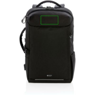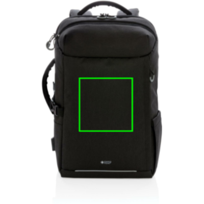 Reseryggsäck som passar både som handbagage på flyget och för en weekend-resa. Vadderat laptopfack med plats för 17" laptop. Med kapacitet som en trolley utan den extra vikten från handtag och hjul. Dessutom reser man smidigt med en ryggsäck. Med bagagerem, sidofack för vattenflaska och USB output. Toppfack med enkel åtkomst, blixtlåsförsett frontfack och RFID-skyddade fack. Med AWARE™ spårämne som validerar användandet av genuint återvunna material. 2% av intäkterna för varje såld Impact-produkt kommer att doneras till Water.org. PVC-fri.