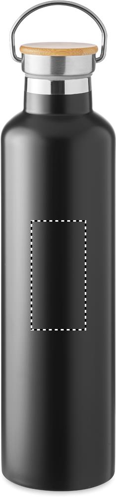 Isolerande vakuumflaska i rostfritt stål med lock i bambu och bärögla. Passar för både varma och kalla drycker. Volym: 1L. Tål diskmaskin (lock handdisk).