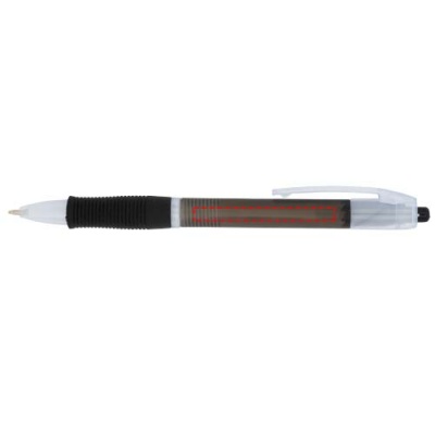 Trim kulspetspenna. Färgrik kulspetspenna med tryckmekanism, genomskinligt skaft och gummigrepp i matchande färg. Plast.
