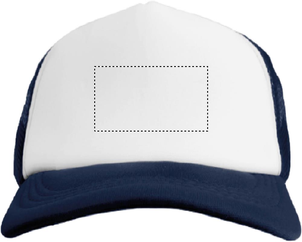 Truckerkeps i retrostil. 5 paneler i polyester 140-150 gr/m2 med plastspänne bak. Vit frontpanel med 4 mm vaddering ger stor tryckyta. Skärm i polyester jersey och nät i färgad mesh. Storlek 7 1/4.