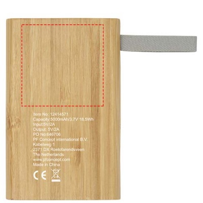 Bambu powerbank som ger 5 000 mAh extra ström för mobiltelefoner eller andra digitala enheter. Den har LED-indikatorlampor och ett band i väv av RPET-material. Förpackad i en presentförpackning och levereras med en bruksanvisning (båda tillverkade av hållbart material).Micro-USB laddningskabel medföljer. Eftersom bambu är en naturprodukt kan det finnas små variationer i färg och storlek per objekt, vilket kan påverka det slutliga dekorationsutfallet.