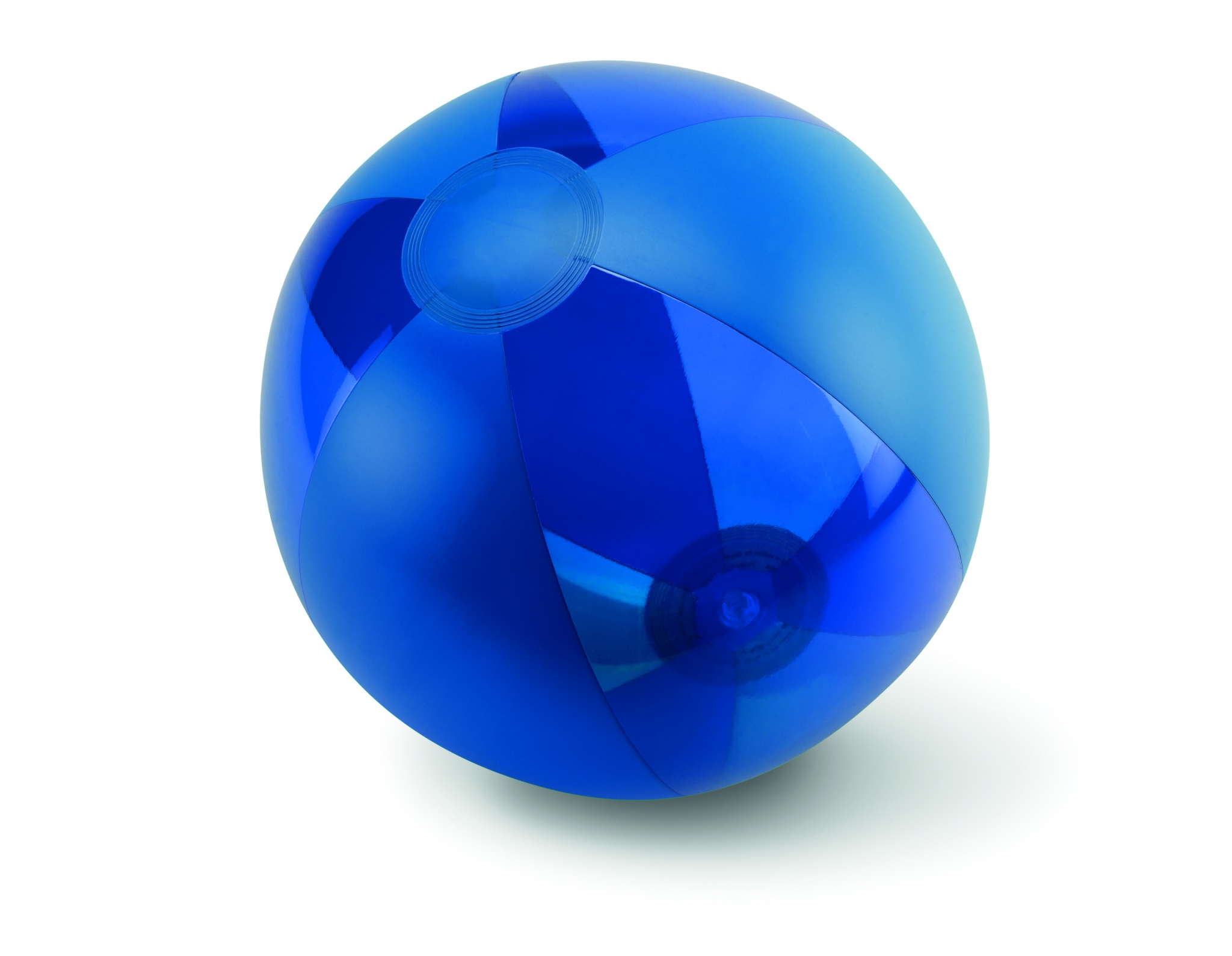 Uppblåsbar badboll med varannan panel semitransparenta och varannan solid. Storlek uppblåst: Ø24cm