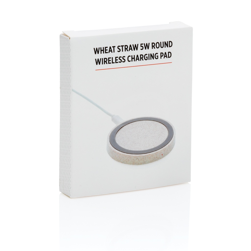 Logotrade presentreklam bild: Vetestrå rund 5W trådlös laddningsplatta