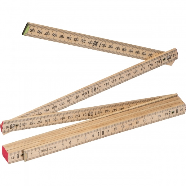 Vikstock av trä med ett mätområde på upp till 2 meter. Din logotyp kommer att tryckas på den vikbara linjalen. Observera att det är ett reklamobjekt, inte ett professionellt verktyg.