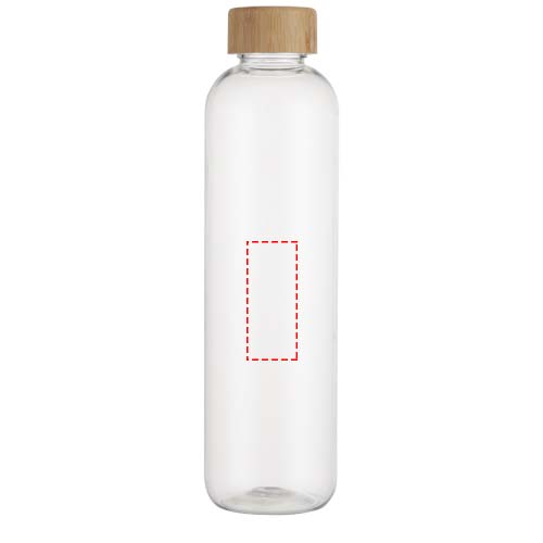 Vattenflaska tillverkad av återvunnen plast, med ett snyggt lock av bambu. Flaskan har enkelvägg, är BPA-fri, testad och godkänd enligt tysk lagstiftning om livsmedelssäkerhet (LFGB). Testad och godkänd för ftalat-innehåll enligt REACH-förordningen. Bambun kommer från hållbara, miljömässigt och socialt ansvarsfulla källor. Volymkapacitet 950 ml. Handdisk rekommenderas. Levereras i en presentförpackning av återvunnen kartong.